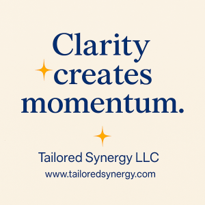 At Tailored Synergy LLC, we know clarity isn’t just a nice extra, it’s the key to real progress. Whether you’re running an eCommerce brand or seeking personal growth, things start shifting when you can finally see the big picture. Once you have that clarity, momentum kicks in.